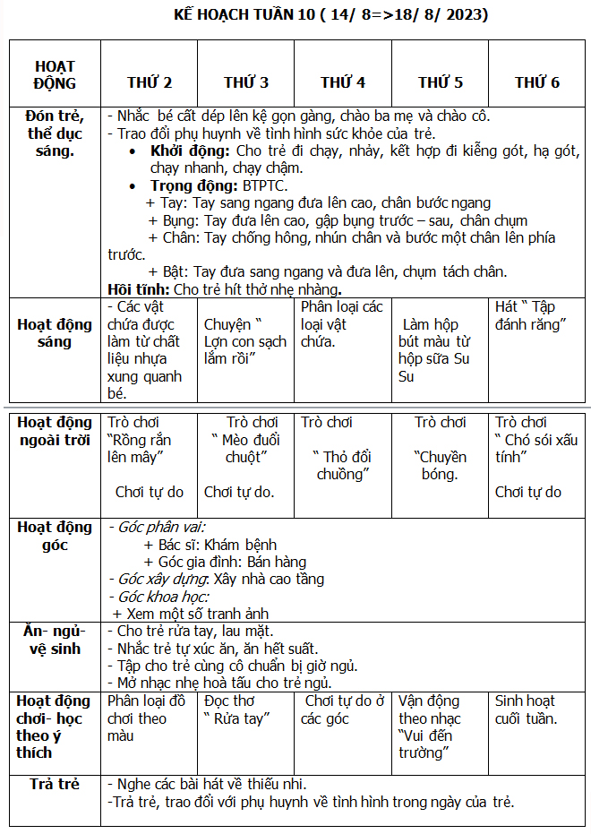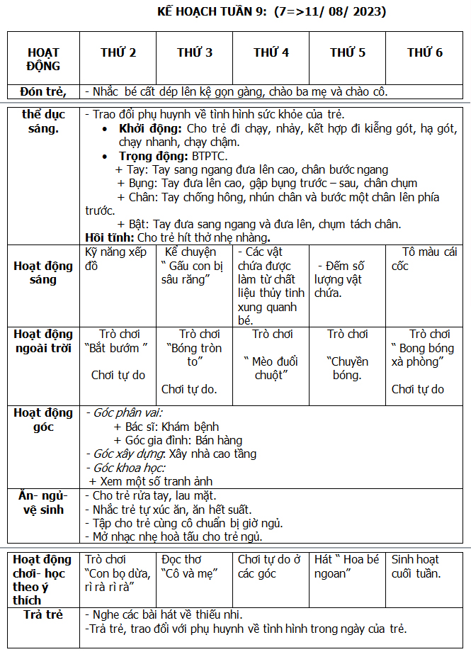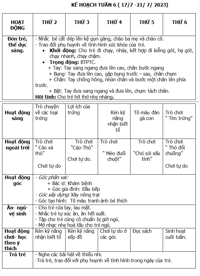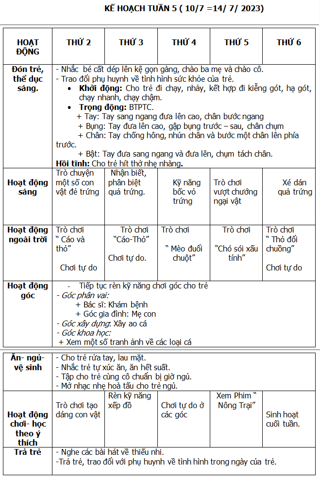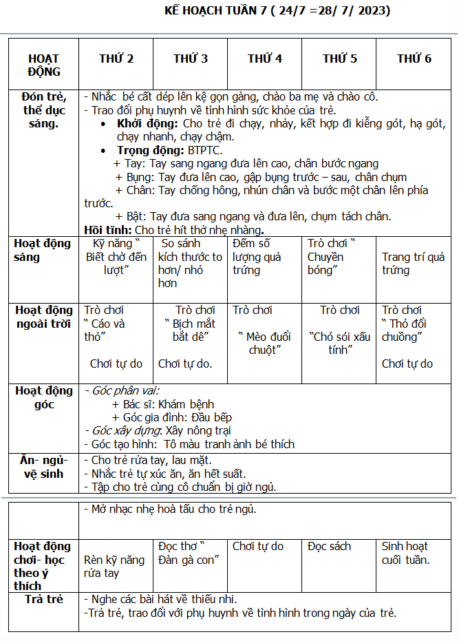 KẾ HOẠCH HÈ THÁNG 6-7-8/ 2023