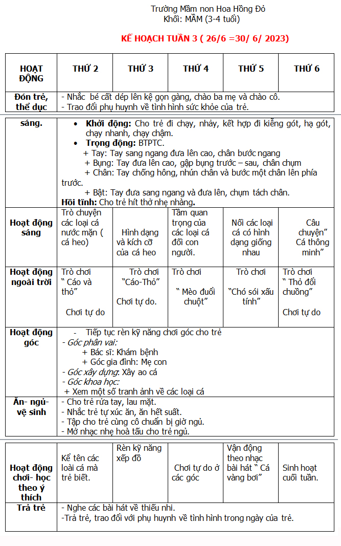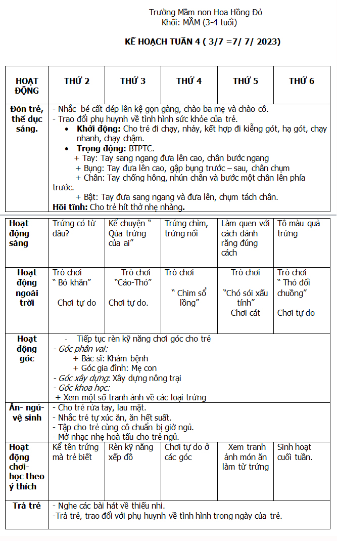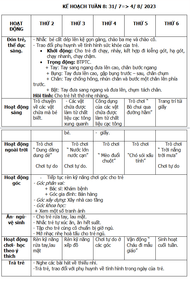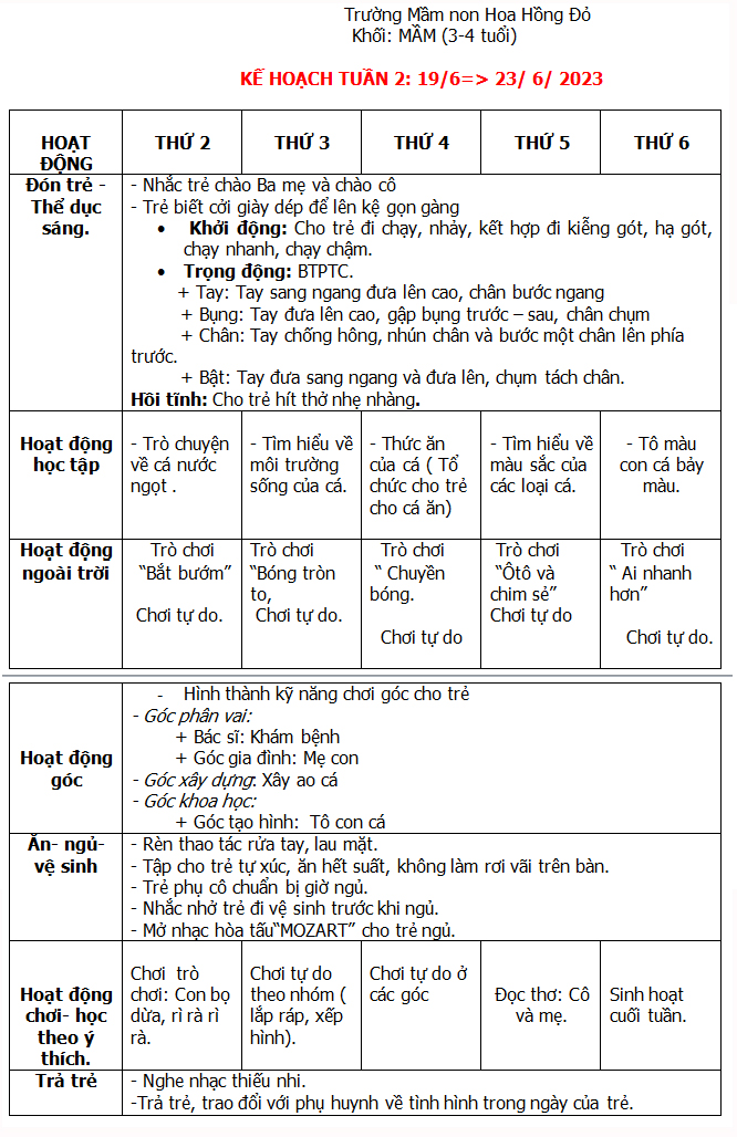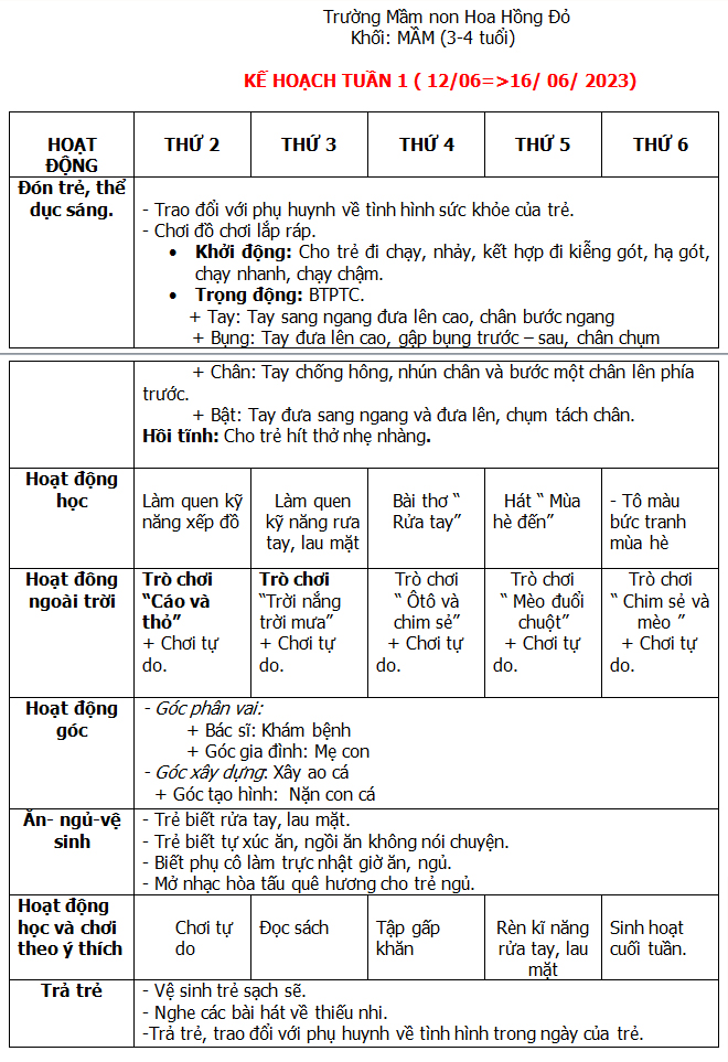 KẾ HOẠCH HÈ THÁNG 6-7-8/ 2023
