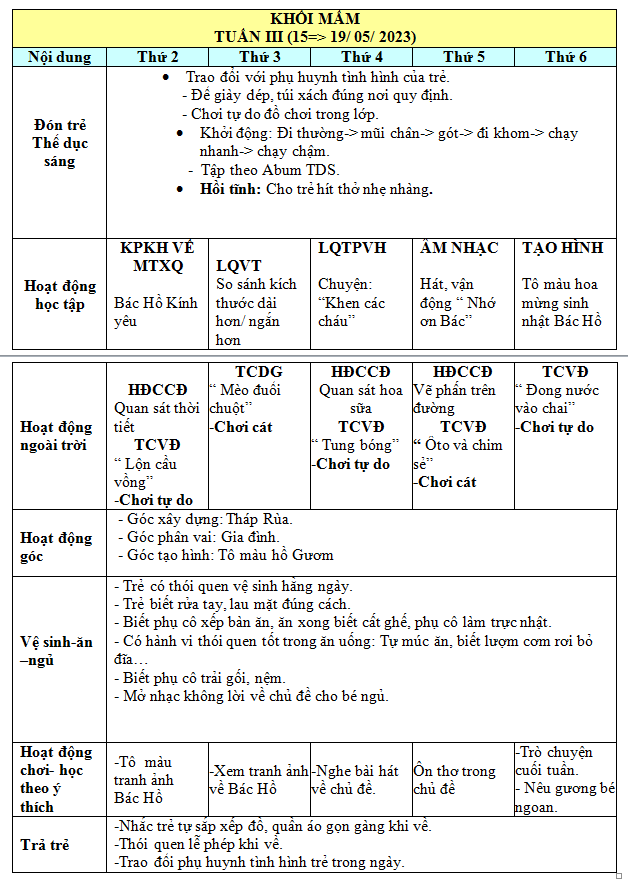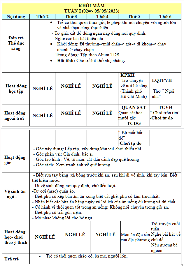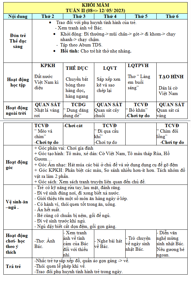 KẾ HOẠCH THÁNG 05